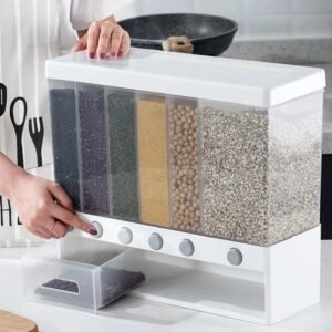 🍚 Organize your kitchen with a 6-Grid Food Dispenser! Store up to 26LB rice, grains & more – One-press design!
